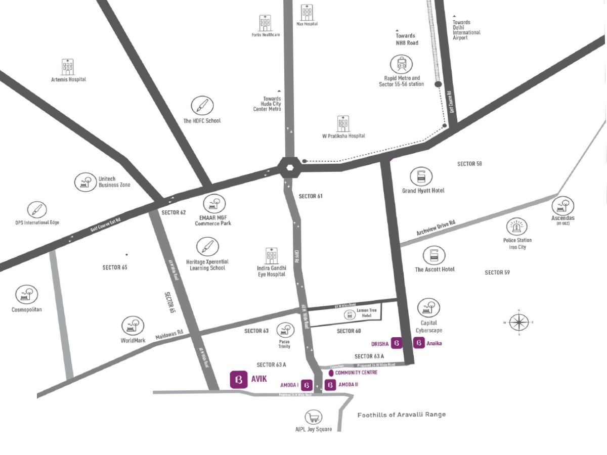 Birla Navya Avik is located in Sector 63A, Gurgaon, on Golf Course Extension Road, with easy
